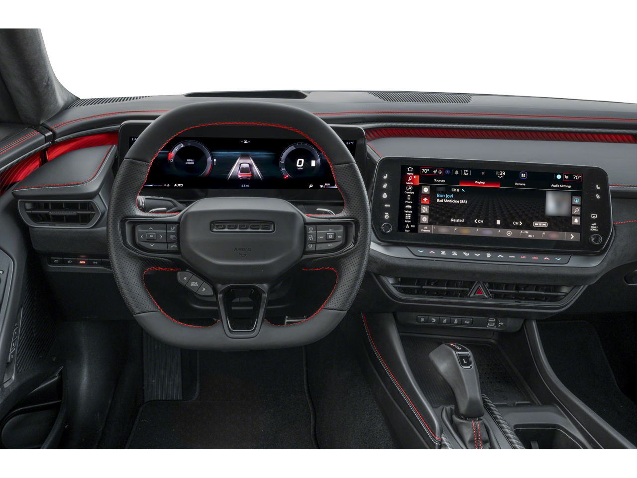 Thank you for reviewing our vehicle. At York CDJR we have hundreds of new and pre-owned vehicles to choose from. Our New vehicles come equipped with additional accessories. Please contact our team at 888-501-3696. This Dodge Charger is equipped with the following Equipment Options: Blacktop Package (Dark Exterior Badging, Dual Rear Exhaust with Black Tips, and Sport Suspension), Driver Convenience Group (2-Way Manual Adjust Front Head Restraints, 2-Way Power Driver Lumbar Adjust, 4-Way Manual Adjust Front Passenger Seat, 8-Way Power Driver Seat Adjust, 9 Speaker Alpine Audio with Subwoofer, Active Noise Control System, Auto-Dimming Rear-View Mirror, Heated Front Seats, Heated Steering Wheel, Leatherette/Cloth Performance Seats, Low Back Bucket Seats, ParkSense Front and Rear Park Assist with Stop, Performance Shift Indicator, Rear Hatch Cargo Cover, Side Distance Warning, Steering Wheel Mount Paddle Shifters, and Universal Garage Door Opener), Quick Order Package 21L R/T, Two Tone Paint Group, AWD, Black Artificial Leather, 12.3 Touchscreen Display, 18 x 8.5 Aluminum Wheels, 4-Wheel Disc Brakes, 4G LTE Wi-Fi Hot Spot, 6 Speakers, ABS brakes, Air Conditioning, Alloy wheels, AM/FM radio: SiriusXM w/360L, Apple CarPlay/Android Auto, Automatic temperature control, Black Seats, Brake assist, Bumpers: body-color, Cloth Sport Seats, Compass, Connectivity - US/Canada, Delay-off headlights, Disassociated Touchscreen Display, Driver door bin, Driver vanity mirror, Dual front impact airbags, Dual front side impact airbags, Electronic Stability Control, Emergency communication system: Dodge Connect, Four wheel independent suspension, Front anti-roll bar, Front Bucket Seats, Front Center Armrest, Front dual zone A/C, Front reading lights, Fully automatic headlights, Heated door mirrors, Heated Exterior Mirrors, Illuminated entry, Integrated Center Stack Radio, Knee airbag, Leather Shift Knob, Low tire pressure warning, Manufacturer's Statement of Origin, MyFlexCare Service Plan, Occupant sensing airbag, Outside temperature display, Overhead airbag, Overhead console, Panic alarm, ParkView Rear Back-Up Camera, Passenger door bin, Passenger vanity mirror, Power Adjust Mirrors, Power door mirrors, Power steering, Power windows, Radio data system, Radio: Uconnect 5 with 12.3 Display, Rear anti-roll bar, Rear reading lights, Rear seat center armrest, Rear window defroster, Remote keyless entry, Security system, Speed control, Split folding rear seat, Sport steering wheel, Steering wheel mounted audio controls, Tachometer, Telescoping steering wheel, Tilt steering wheel, Traction control, Trip computer, Variably intermittent wipers, Wheels: 20 x 9 Black Aluminum, Wireless Apple CarPlay, and Wireless Google Android Auto.
