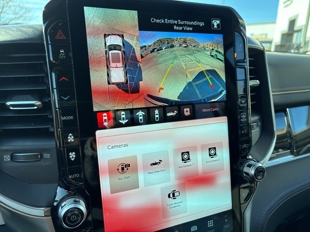 Thank you for reviewing our vehicle. At York CDJR we have hundreds of new and pre-owned vehicles to choose from. Our New vehicles come equipped with additional accessories. Please contact our team at 888-501-3696. This Ram 1500 is equipped with the following Equipment Options: Bed Utility Group (Exterior 115V AC Outlet, MOPAR 4 Adjustable Cargo Tie-Down Hooks, and Truck Bed Cargo Divider), Quick Order Package 22V Tungsten, Towing Technology Group (12-Way/1-Way Trailer Connector, Digital 3.0 Rear View Auto Dim Mirror, Trailer Hitch Line-Up Assist, and Trailer Reverse Guidance), Trailer Tow Group (Trailer Brake Control, Trailer Light Check, Trailer Reverse Steering Control, and Trailer Tire Pressure Monitoring System), 3.92 Rear Axle Ratio, 4-Wheel Disc Brakes, ABS brakes, Adjustable pedals, Air Conditioning, Alloy wheels, AM/FM radio, Apple CarPlay/Android Auto, Audio memory, Auto High-beam Headlights, Auto Power-Folding Mirrors, Auto-dimming door mirrors, Auto-Dimming Exterior Driver Mirror, Auto-Dimming Exterior Passenger Mirror, Auto-dimming Rear-View mirror, Auto-leveling suspension, Automatic temperature control, Bodyside moldings, Brake assist, Bumpers: body-color, Chrome Exterior Mirrors, Chrome Power-Fold Trailer Tow Mirrors, Compass, Delay-off headlights, Driver door bin, Driver vanity mirror, Dual front impact airbags, Dual front side impact airbags, E-Locker Rear Axle, Electronic Stability Control, Exterior Mirrors Courtesy Lamps, Exterior Mirrors with Heating Element, Exterior Mirrors with Memory, Exterior Mirrors with Supplemental Signals, Exterior Parking Camera Rear, Forward and Reverse Utility Lights, Front anti-roll bar, Front Bucket Seats, Front Center Armrest w/Storage, Front dual zone A/C, Front fog lights, Front reading lights, Front wheel independent suspension, Fully automatic headlights, Garage door transmitter, Heads-Up Display, Heated door mirrors, Heated front seats, Heated rear seats, Heated steering wheel, Illuminated entry, Leather steering wheel, Low tire pressure warning, Manufacturer's Statement of Origin, Memory seat, Mirror Clearance/Running Lights, MyFlexCare Service Plan, Navigation System, Occupant sensing airbag, Outside temperature display, Overhead airbag, Overhead console, Panic alarm, Passenger door bin, Passenger vanity mirror, Pedal memory, Power adjustable front head restraints, Power door mirrors, Power driver seat, Power moonroof, Power passenger seat, Power steering, Power Telescoping Mirrors, Power windows, Power-Adjustable Convex Aux Mirrors, Premium Leather Bucket Seats, Radio data system, Radio: Uconnect 5 Nav with 14.4 Display, Rain sensing wipers, Rear anti-roll bar, Rear reading lights, Rear seat center armrest, Rear step bumper, Rear window defroster, Remote keyless entry, Security system, Speed control, Split folding rear seat, Steering wheel mounted audio controls, Tachometer, Telescoping steering wheel, Tilt steering wheel, Traction control, Trailer Tow Mirrors, Trip computer, Turn signal indicator mirrors, Variably intermittent wipers, Ventilated front seats, Ventilated rear seats, Voltmeter, and Wheels: 22 x 9 Polish/Painted with Inserts.